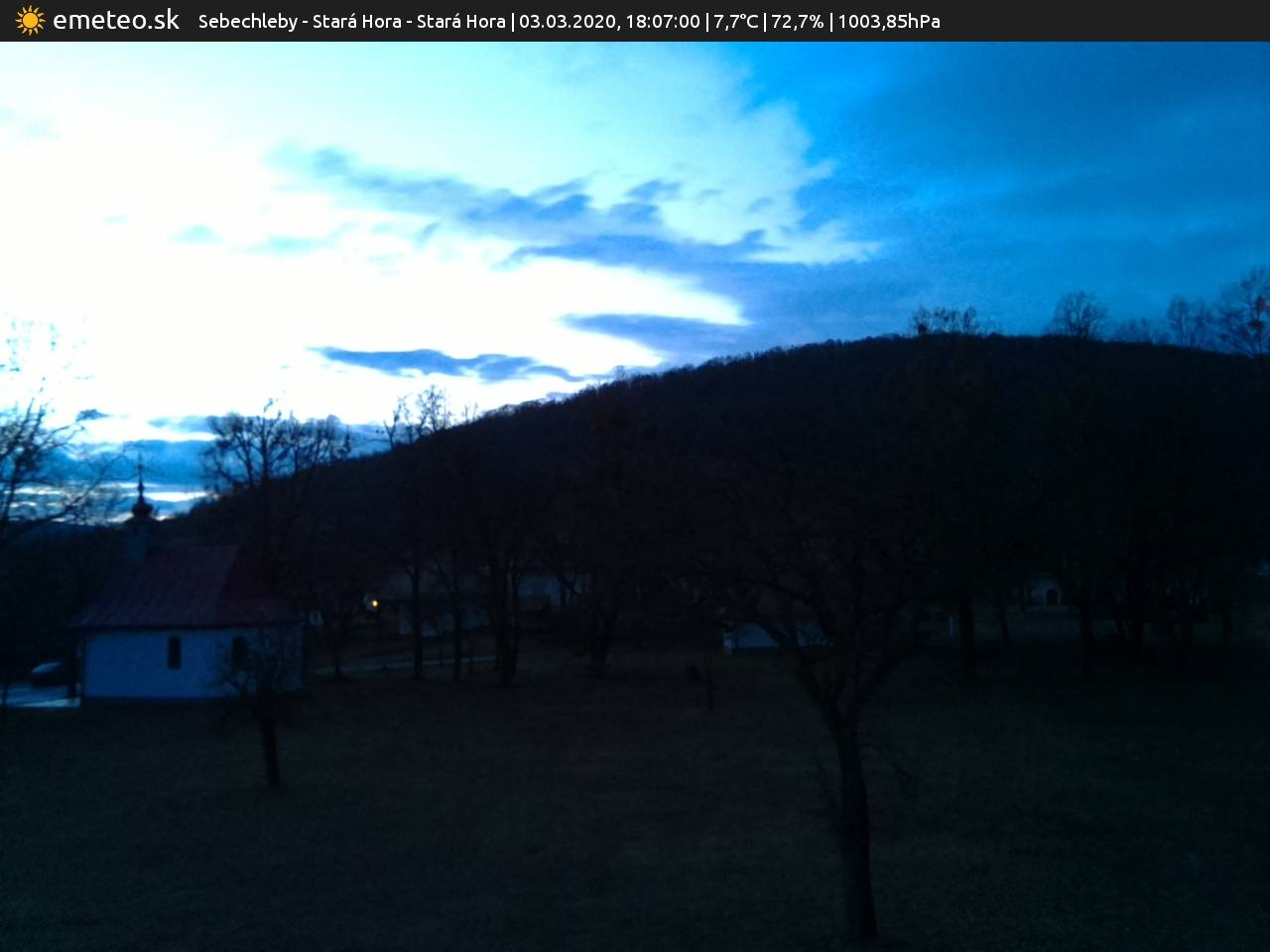 Webkamera Kaplnka sv. Urbana je súčasťou meteostanice Sebechleby - Stará Hora. | Plná kvalita snímky