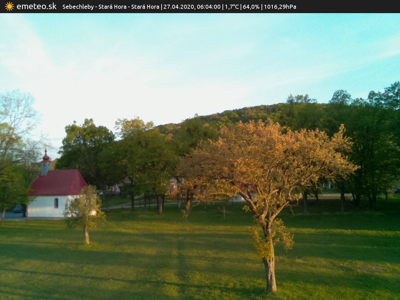 Webkamera Kaplnka sv. Urbana je súčasťou meteostanice Sebechleby - Stará Hora. | Plná kvalita snímky