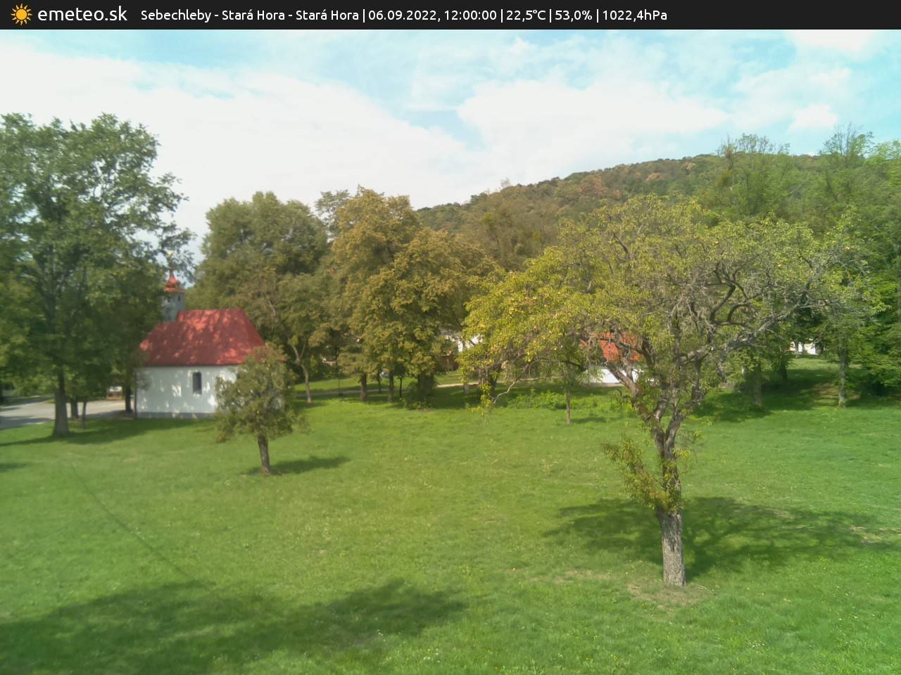 Webkamera Kaplnka sv. Urbana je súčasťou meteostanice Sebechleby - Stará Hora. | Plná kvalita snímky