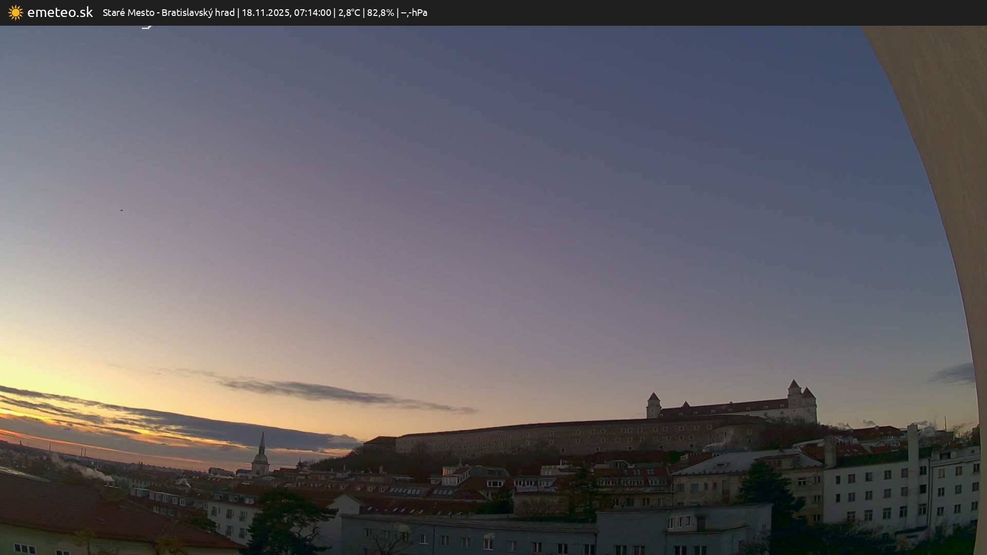 Webkamera Bratislavský hrad je súčasťou meteostanice Staré Mesto. | Plná kvalita snímky