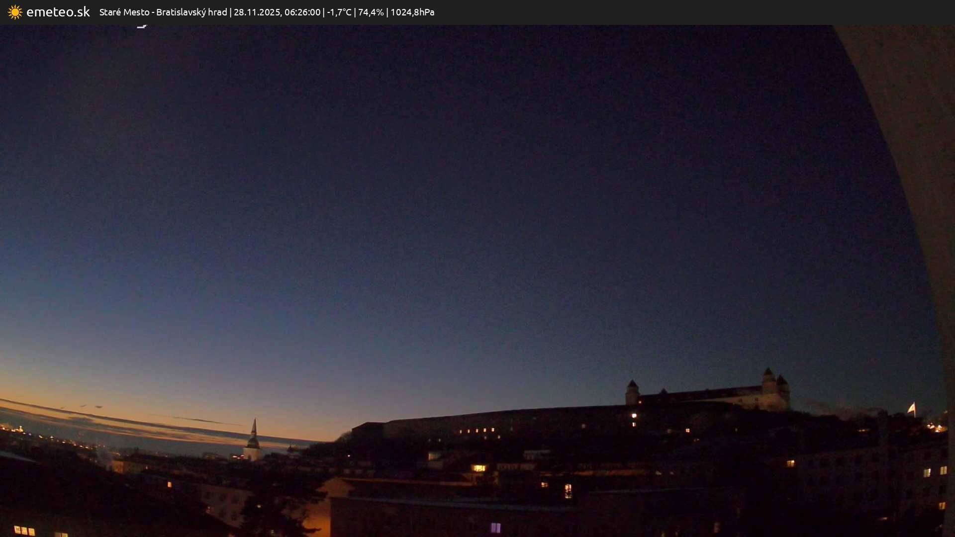 Webkamera Bratislavský hrad je súčasťou meteostanice Staré Mesto. | Plná kvalita snímky