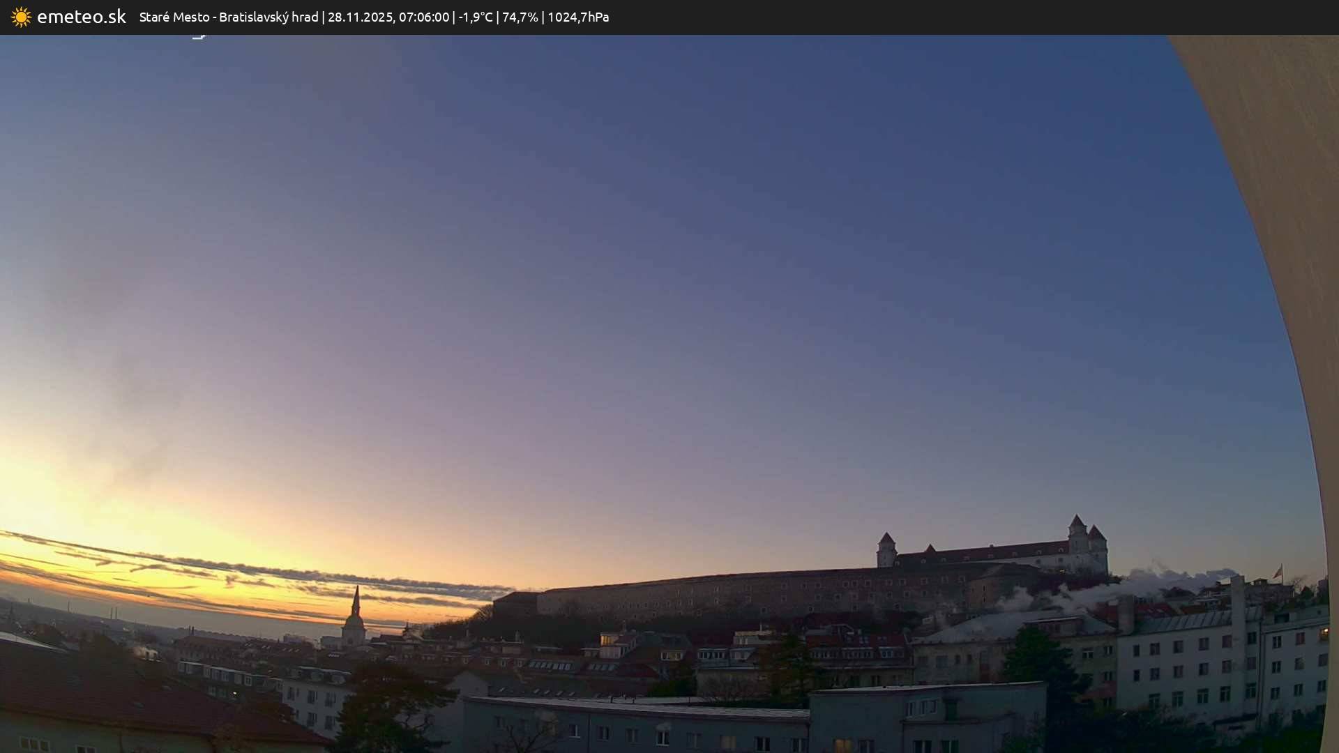Webkamera Bratislavský hrad je súčasťou meteostanice Staré Mesto. | Plná kvalita snímky