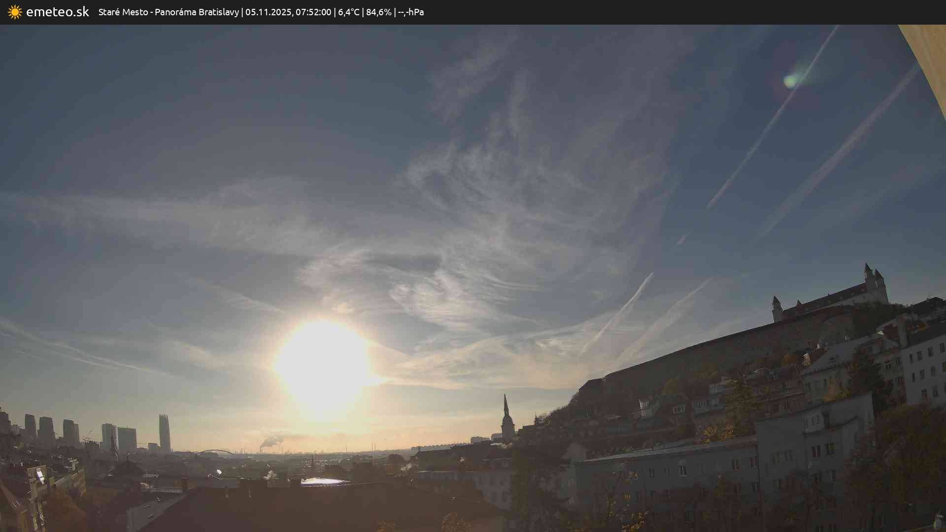 Webkamera Panoráma Bratislavy je súčasťou meteostanice Staré Mesto. | Plná kvalita snímky