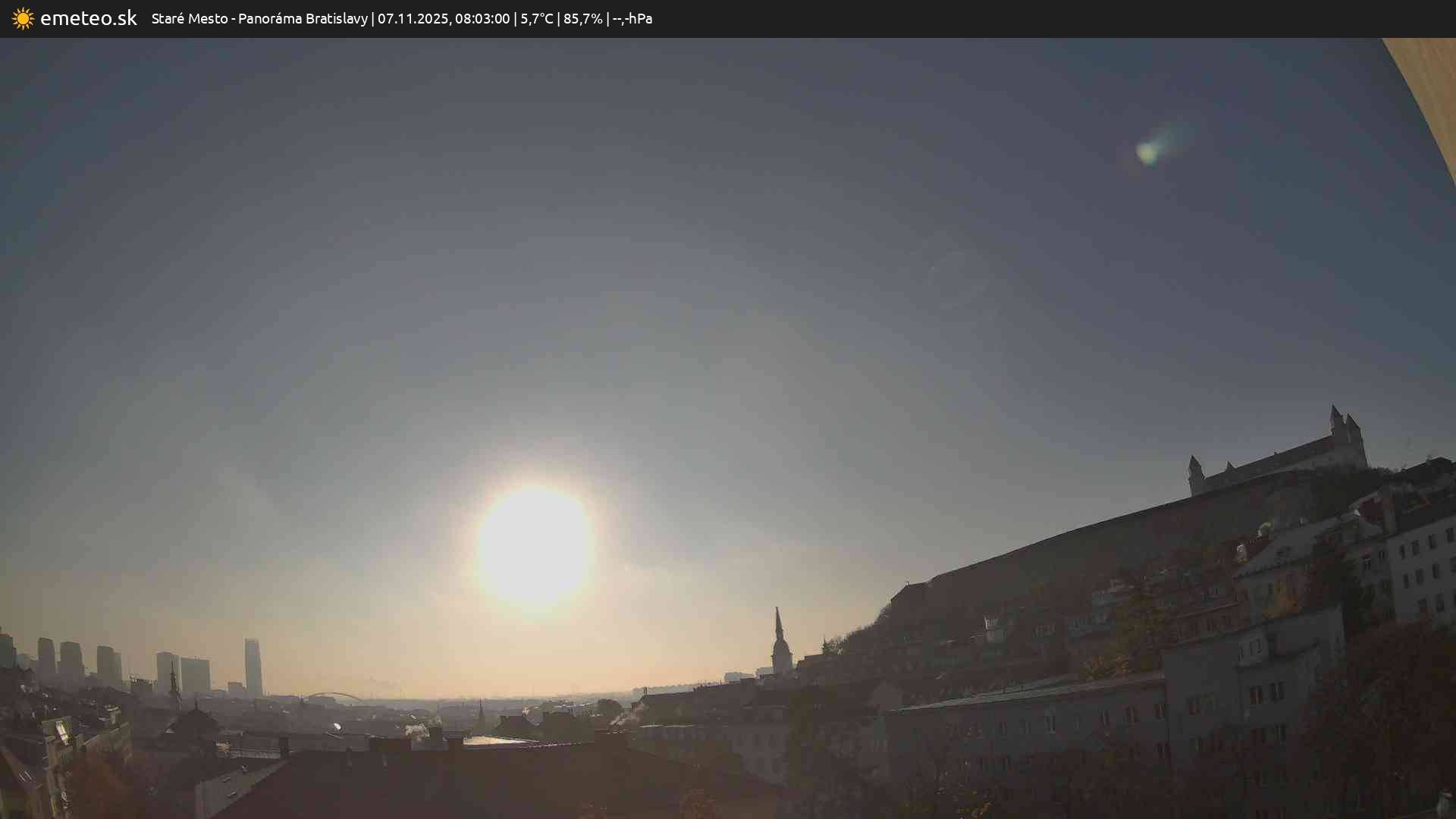 Webkamera Panoráma Bratislavy je súčasťou meteostanice Staré Mesto. | Plná kvalita snímky