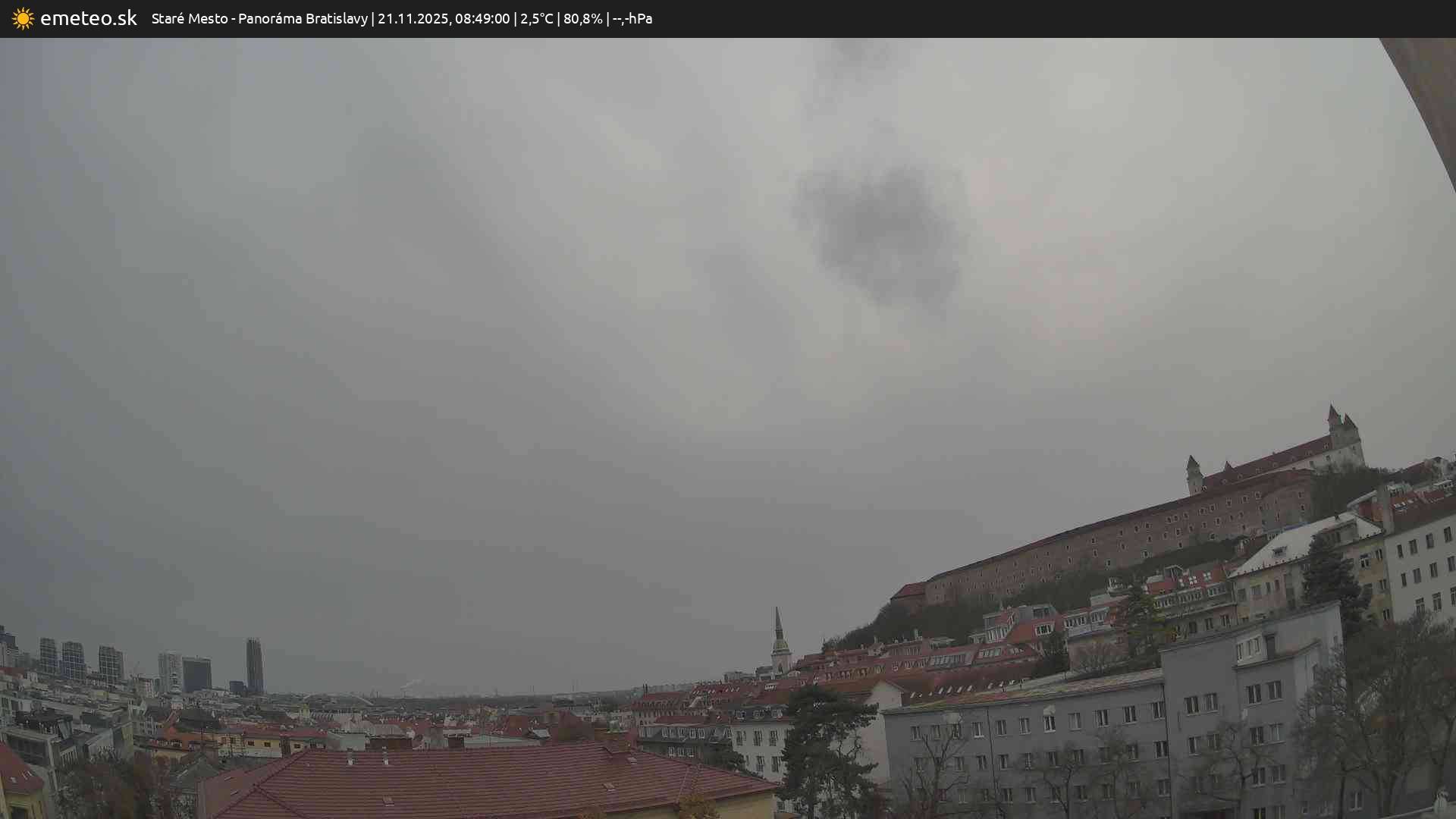 Webkamera Panoráma Bratislavy je súčasťou meteostanice Staré Mesto. | Plná kvalita snímky