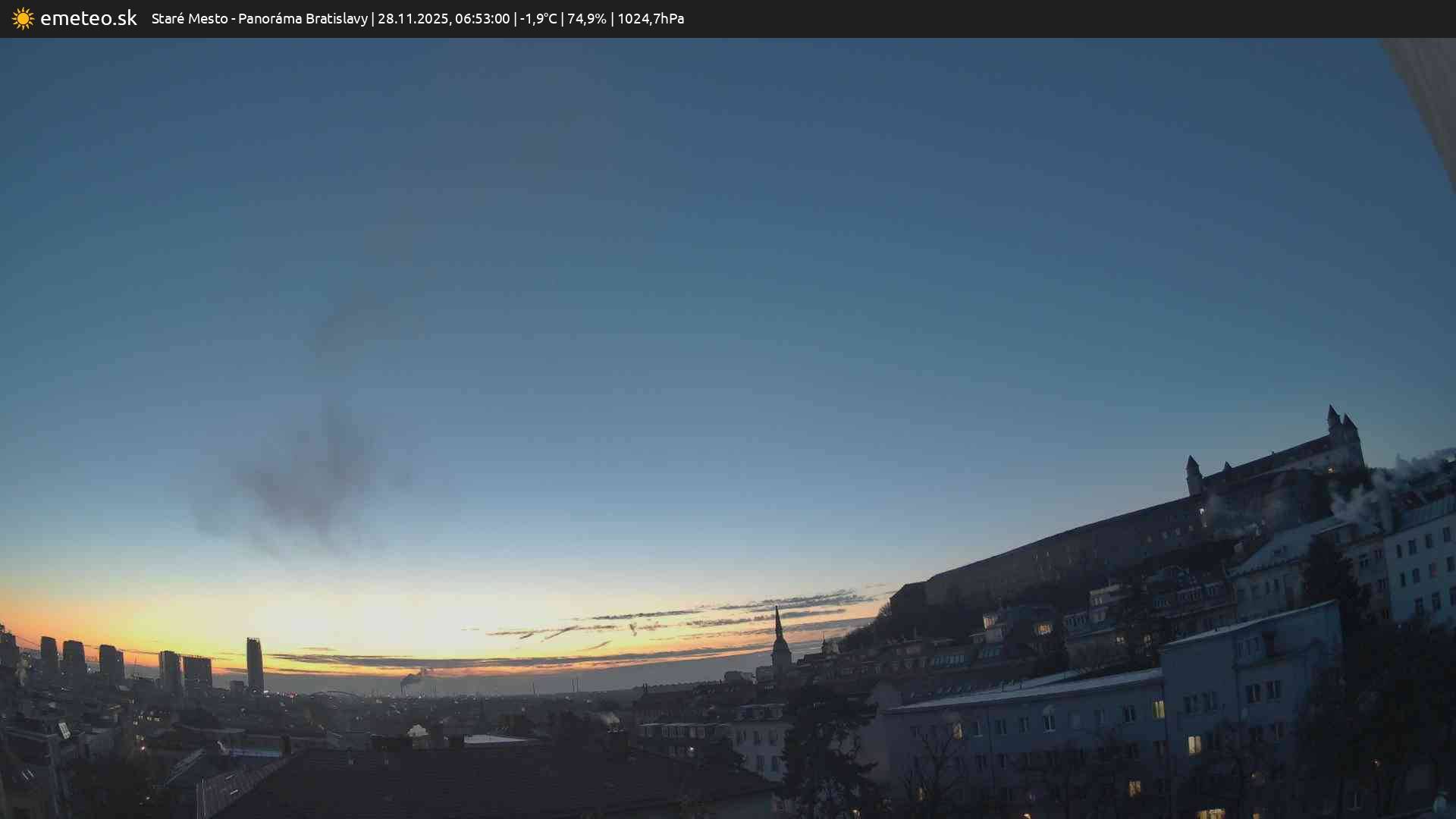 Webkamera Panoráma Bratislavy je súčasťou meteostanice Staré Mesto. | Plná kvalita snímky